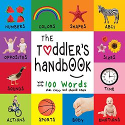 The Toddler’s Handbook introduces 17 basic concepts. Included are numbers, colors, shapes, sizes, ABCs, animals, opposites, sounds, actions, sports, food, tableware, clothes, engines, emotions, body, and time. This book