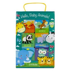 From giraffes to monkeys to penguins to pandas, these 24 sturdy board books and handled carrying case introduce little learners to their favorite baby animals! Little readers will learn