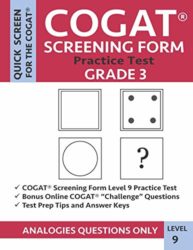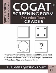 This book contains a Grade 5 CogAT® Screening Form practice test, which provides gifted and talented CogAT test preparation for third grade students. This Level 11 (Grade 5) practice
