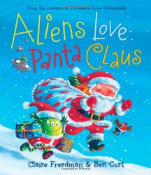 The aliens are excited, For tomorrow’s Christmas Day, So instead of stealing underpants, They’re giving them away! Aliens love underpants! But they also love Christmas and Santa Claus. So