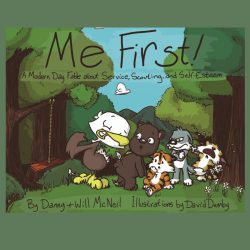 Me First! tells the story of Baden, a selfish eagle who annoys friends, family, and neighbors as he always demands to be first. Baden’s behavior makes others reject him,