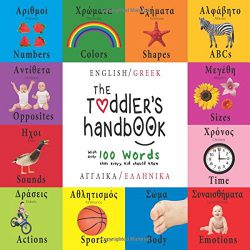 The Toddler’s Handbook introduces 17 basic concepts in English and Greek. Included are numbers, colors, shapes, sizes, ABCs, animals, opposites, sounds, actions, sports, food, tableware, clothes, vehicles, emotions, body,